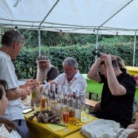 Nach einer Stärkung mit frisch geräucherter Forelle, der Begrüßung durch den Vorstand, den Grußworten und Ehrungen durch die geladenen Gäste, konnten sich Interessierte bei einer Führung entlang der Straßheimer Teiche nebst Feuchtbiotop, ein eigenes Bild über die hervorragende Biodiversität und Nachhaltigkeit, dieses auch von der Bevölkerung gerne und häufig genutzten Naherholungsgebiets machen. So hat hier schon seit vielen Jahren u. a. eine Biberfamilie und zahlreiche Wasservögel ihr zuhause (auch ein Eisvogel hat während der Veranstaltung mehrmals gegrüßt). Wolfgang Heisig, der 1972 schon selbst mit Spaten und Schippe zur Entstehung der Teichanlage und anschließend mit jahrzehntelangen vielfältigen Arbeiten zu deren Entwicklung maßgeblich beigetragen hat, konnte während der Führung neben wichtigen natur- und fischereikundlichen Informationen, die eine oder andere Anekdote beitragen. Nach einer weiteren Stärkung am großen Kuchenbuffet mit gestifteten selbst gebackenen Kuchen der Vereinsmitglieder, wurde ein Angelzielwerfen auf eine Zielscheibe, ein sogenanntes Casting, angeboten. In diesem Wettbewerb sind die Mitglieder des ASV Friedberg schon seit Jahrzehnten mit Ermittlung eines jeweiligen Jahresmeisters engagiert. Mit großer Freude und nostalgischem Interesse, wurde auch eine vom neuen Schriftführer des ASV, Herrn Stefan Heisig, zusammengestellte Bildershow der letzten 50 Jahre des Angelvereins betrachtet. In gemütlicher Runde, im Verlauf mit einer Apfelweinblindverkostung, in der 8 verschiedene sortenreine Apfelweine bestimmt werden sollten, klang das Fest dann zu später Stunde aus.